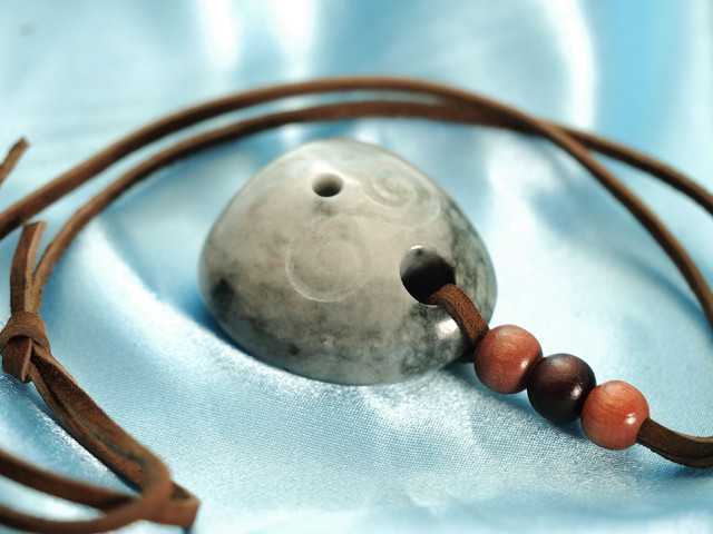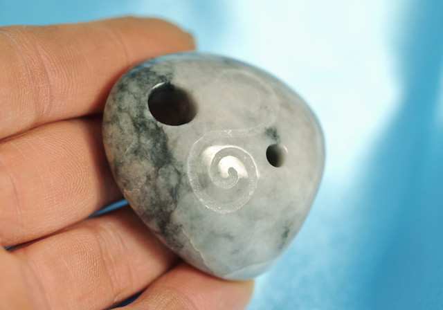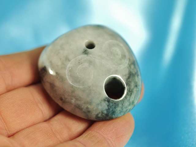 鬼っこヒスイから生まれたくり坊・・・二重螺旋線刻石笛
