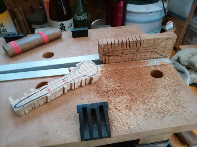 最大のポイントは内側のカーブだから、最初に作った治具はカーブ用のテンプレート。