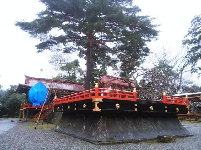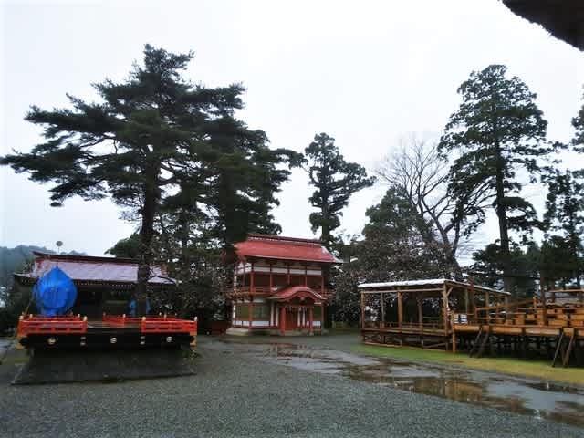 桟敷と舞楽の準備が整い、祭りの準備が着々と進んでいた。