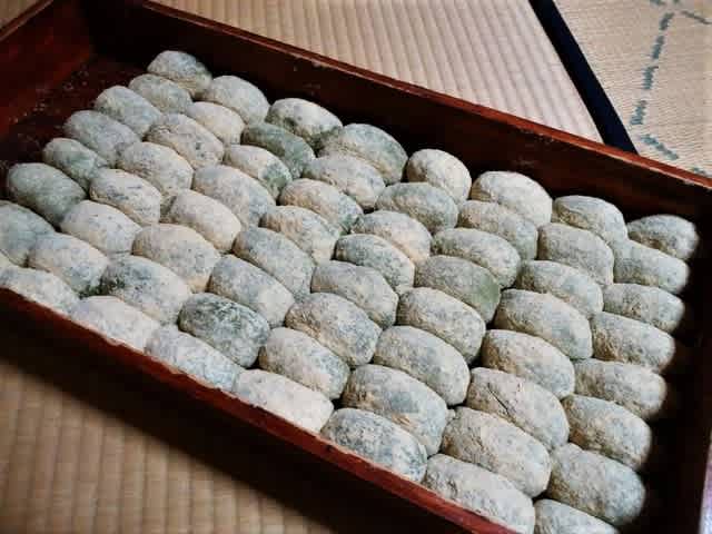 けんか祭りは寺町と押上の男だけが参加できるが、女衆(オンナショ)だって準備や後片付けに忙しい。祭りに欠かせない中に漉し餡が入った黄な粉餅作りもその一つ。女たちのけんか祭りですな