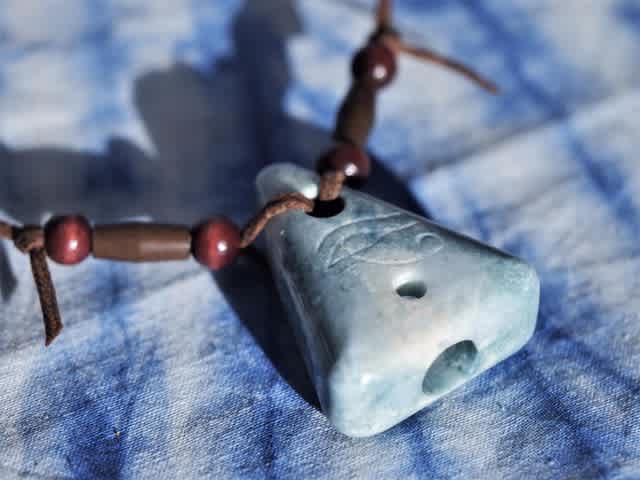 石笛に線刻し始めた時から挑みたいと思いつつ、小さな石笛の中に細くて複雑な模様の線刻をすることに自信がもてず躊躇していたが、なんとかカタチになってくれた。