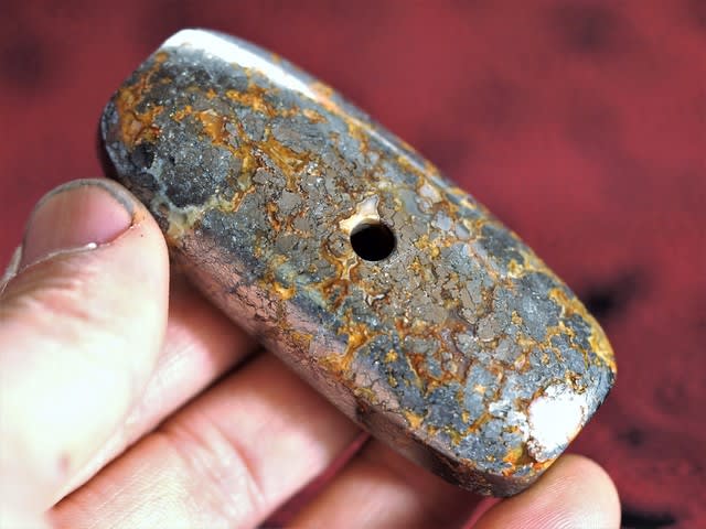 熊本県の轟貝塚出土の石笛をベースに改良を加えたのだけど、使用原石は黄鉄鉱が酸化して黄色く発色した変わり種。