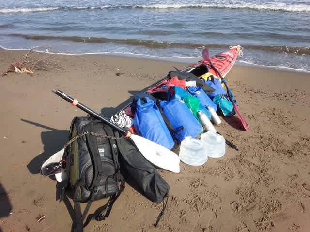 大河津分水河口にて。無人の海岸で5日前後の停滞キャンプを四回経験した。