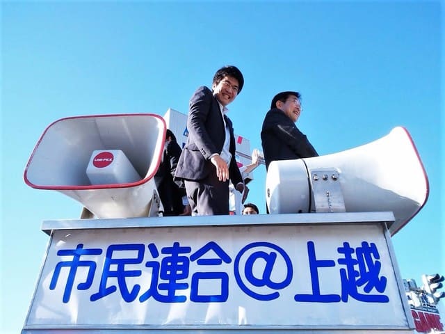 満面の笑みを浮かべるモグラ君は、空家ベースのこけら落とし当日に街頭演説をしていた。