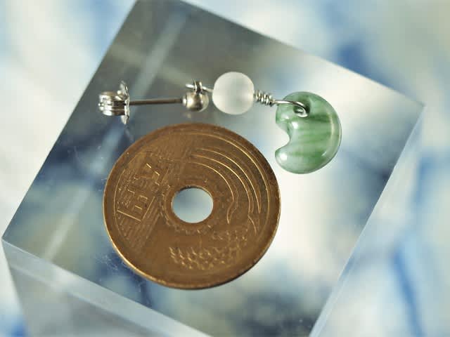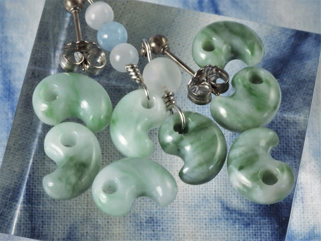 他のヒスイはこんな感じのややスマートな勾玉ピアスになったが・・・。
