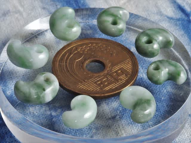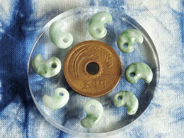 普通の勾玉をそのままスケールダウンしてしまうとバランスが悪いので、可愛らしくデフォルメして作るのだけど、シマシマのヒスイだけがより丸っこい勾玉になってしまった。