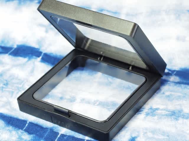 プラスチックの枠にパンパンに張った伸縮性の透明フィルムでアクセサリーを挟み込む方式の展示ケース。