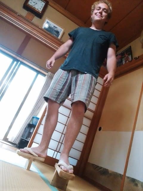 一本歯の下駄は修験者の登山靴。私の所属する整体協会では腰の感覚を掴む稽古グッズだ。