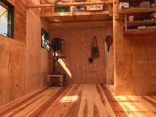 床材もこれまでの耐水合板の上に針葉樹合板を捨て張りして、更に無垢の杉板を張っって仕上げた。