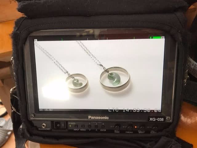 ブツ撮りはでっかいモニターを観ながらアングルや照明を決めていった。