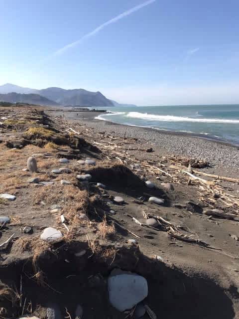 久しぶりに見る姫川河口は、断層のような荒々しい海岸段丘が発達して様子が一変していた。