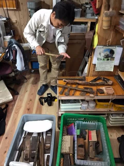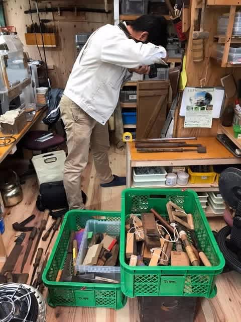 フェイスブック友達の富山県氷見市の学芸員のHさん、私の投稿に興味を持って遠路ぬなかわヒスイ工房を訪ねてきてくれた。ドブネ大工道具のみならず、私の刃物コレクションに興奮気味に記録をとっていた。