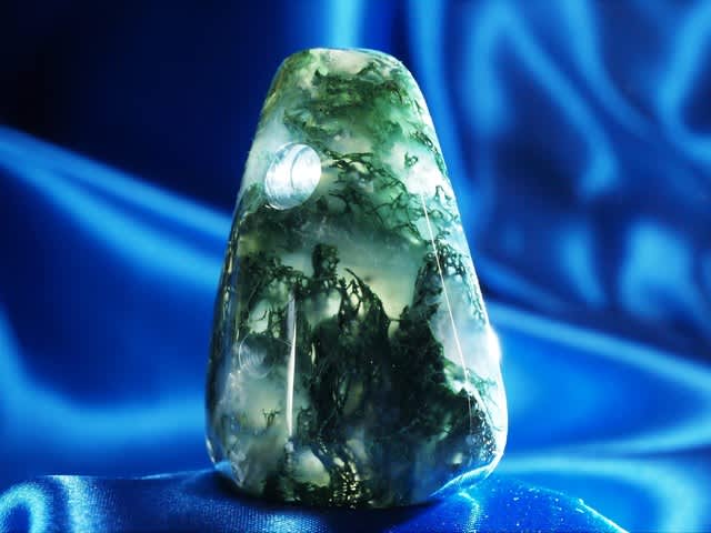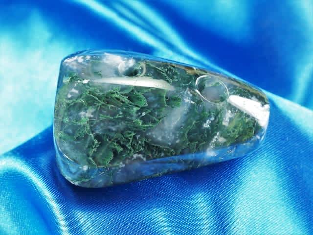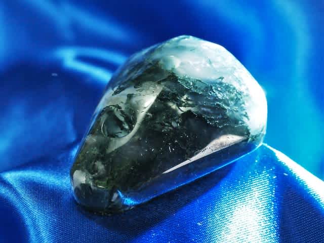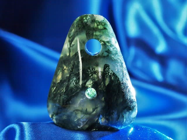 透明な瑪瑙の中に深緑が渦を巻いて複雑に絡み合って浮かんでいる!