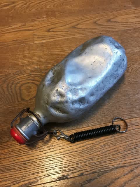 30年来いつも持ち歩いているフランスの「グランテトラ」の登山用水筒は、扁平なアルミ製なので水を入れると氷嚢、お湯を入れると湯たんぽになってくれるサバイバルグッズ。