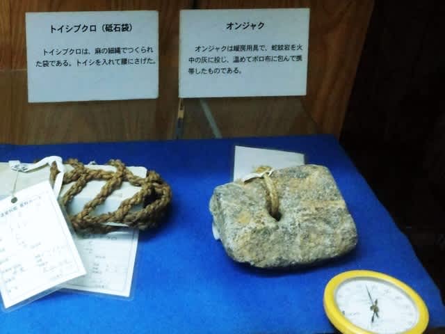 蓄熱性に優れた石を囲炉裏の灰の中で温め、ぼろ布で包んで懐に入れて防寒や、具合の悪い所を温める民間療法にも使われた元祖懐炉である。