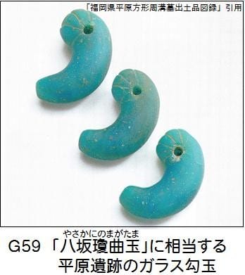 魏志倭人伝に記述のある邪馬台国の朝貢品に「青大勾珠二枚」があり、これはヒスイ勾玉かガラス勾玉か考古学者の間でも見解が分かれているようだ。
