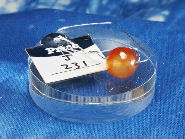 大首飾りに含まれる変わり種の一つが、江戸か明治期に作られたらしきJグループNo,231の赤瑪瑙の丸玉。