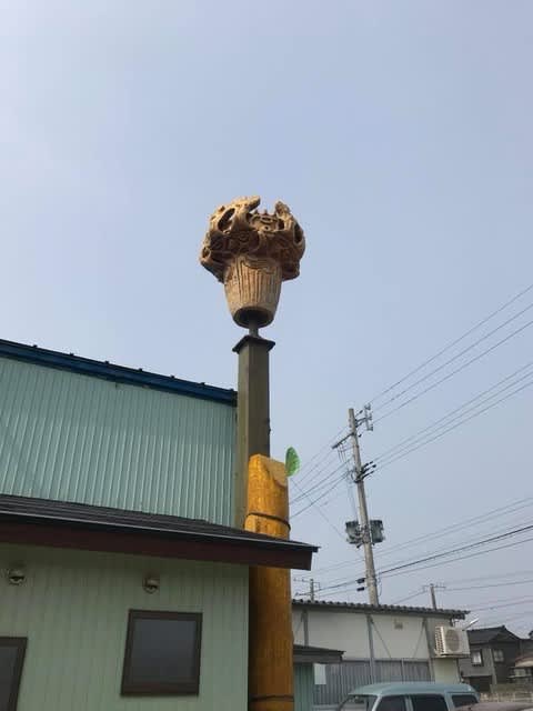 縄文関係で訪れた人をご案内して喜ばれるのが、大和川地区にある看板屋「アテナ工芸」さんの火焔型土器の看板。長者ケ原遺跡入口のコンクリート製火焔型土器の型枠を作った会社である。