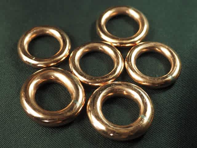 金属の中でも柔らかく加工し易い銅といっても、直径8㎜もある丸棒は簡単に曲がってくれるものではなく、焼きなまししてから指輪のサイズ直しの鉄芯棒に巻き付けて切断した。