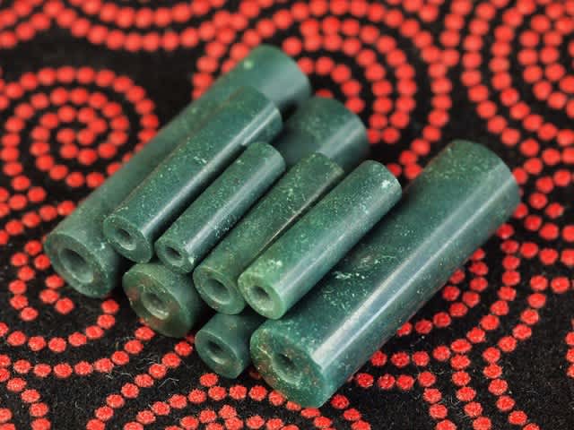 細長い円筒形の真ん中に孔が開いた管玉(クダタマ)は、精度のいい孔を開けるのが勝負の分かれ道。