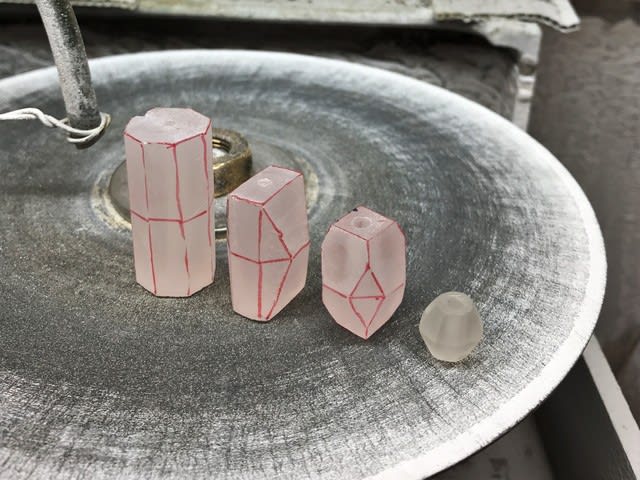 大首飾りに含まれる63点の水晶製切子玉作りを始めた。