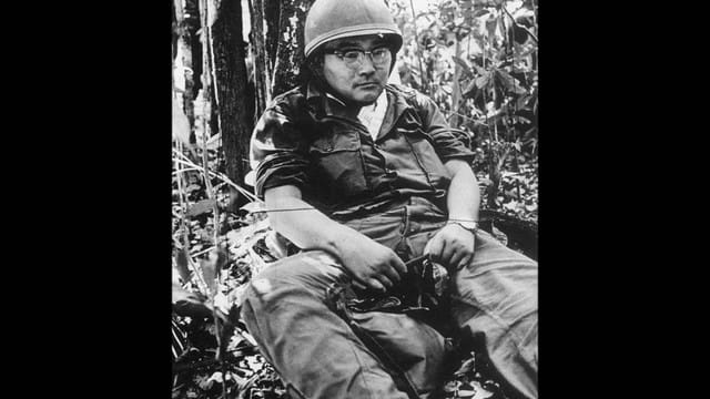ベトナム戦争の取材で、ベトコンに完全包囲されて200名の部隊中、17名生き残った直後の憔悴した開口健の有名な写真、あんな感じに近い。(グーグル画像より)