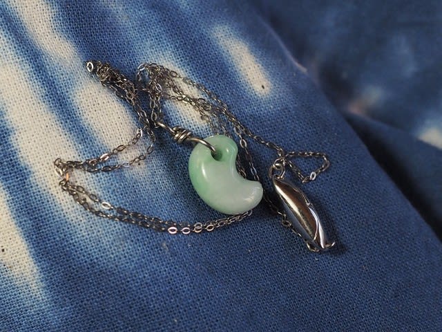 留め具に使用していたステンレス製の引き輪は、首の後ろで装着するには慣れが必要だし、年配のご婦人の場合は大変だろう。