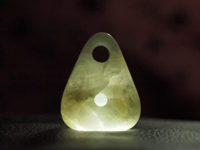 縄文前期のヒスイ大珠は加工技術の未発達もあってか、石目や不純物も「ひとつの世界」とでも言いたげな作りだが、弥生時代以降は完全無欠な綺麗な部分だけで勾玉を作る傾向が強くなる。
