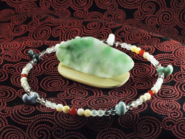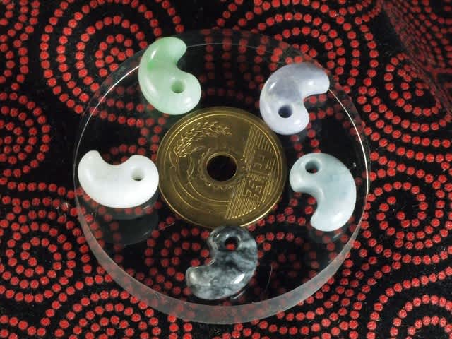 5色のヒスイという課題は、5色ヒスイで超小型勾玉の連環作成。