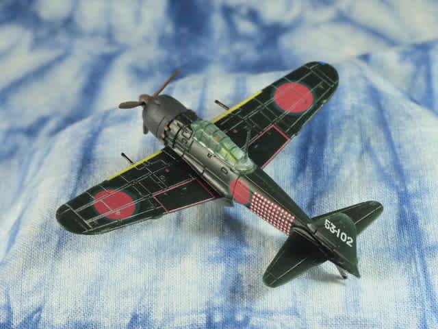 「第253海軍航空隊 岩本徹三飛曹長機 駐機バージョン」というマニアックなのが出て来た。主翼付け根が四角い赤枠に塗られているのは、整備や搭乗の際に可動部のフラップを踏まないための注意・・・やたらとリアル!