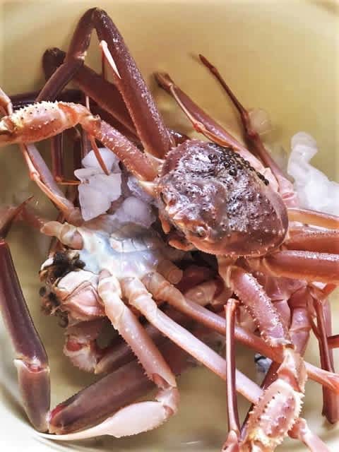 工房に訪ねてきた漁師さんから、生きたズワイガミを三杯も頂いた。