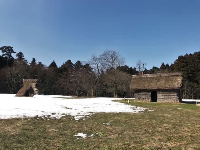 長者ケ原遺跡をガイドしたら、例年なら3月下旬くらいの積雪状態で驚く。