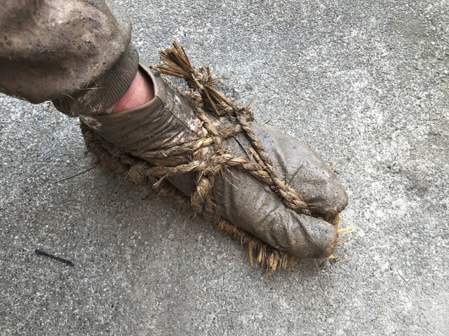 けんか祭りで履いた草鞋は縁起物として軒先に吊るし、前年の草鞋は田畑に鋤き込む風習があった。ぬなかわヒスイ工房でも吊るしている。