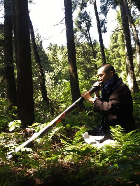 伝説的な映画「ガイアシンフォニー第6番」への出演で著名なイダキ(白蟻に内部を食わて空洞になったユーカリの樹の筒を吹くアボリジニの民族楽器・英語ではデイジュリドウ)と石笛の演奏家のノブ(Knob)さんが、旅の途中で突然訪ねて来てくれた。