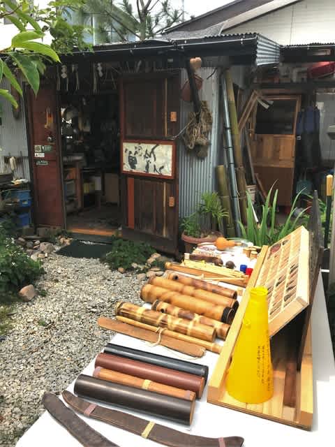 工房の中は4名、それ以外の人は工房の前に民族楽器を並べて遊んでもらうことにした。