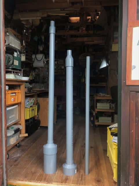 ただの塩ビ管を吹くとプーという音、接続ジョイントで長くしたり太くしたりで形状を4段階に変化させて吹いていくと、最後は本物のデジュリドウと遜色ない野太い音が出るが、その過程を見せることが大事。