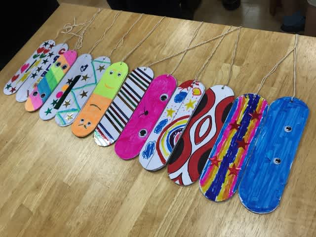ボール紙で作ったウナリ木。2枚重ねで振り回すと音は小さく、4枚重ねだとブンブンと恐ろし気な音がするのは何でだろう?うまく回転しないのは左右バランスが悪いから?それとも回し方が悪いのか?と個別にアドバイスしていった。