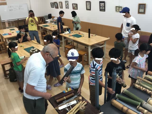 今回はフィイルムケース蟲笛、ストロー笛、ウナリ木を作って貰ったが、途中で失敗してがっかりする子供にリカバリー方法を教えると、哀しい顔が一転してニコニコ顔になった。