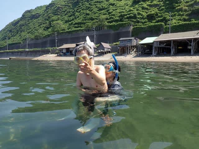 都会生まれの奥さんは海に潜るのは初めて・・・大丈夫、ボクが付いているから!ホント!頼もしいわ!という感じだった。