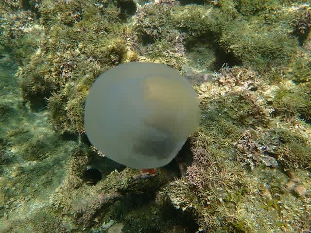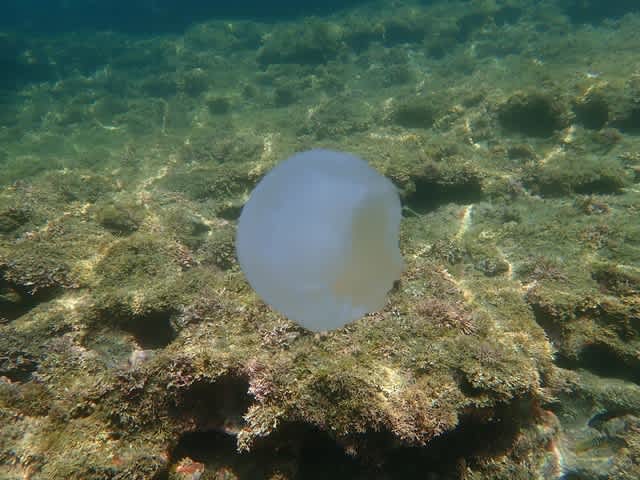 海底の写真撮影に夢中になっていて、おでこにぶつかって腫れたことはあるが、お盆くらいから出てくるアンドンクラゲやアカクラゲに比べると毒性は低いからご愛敬。