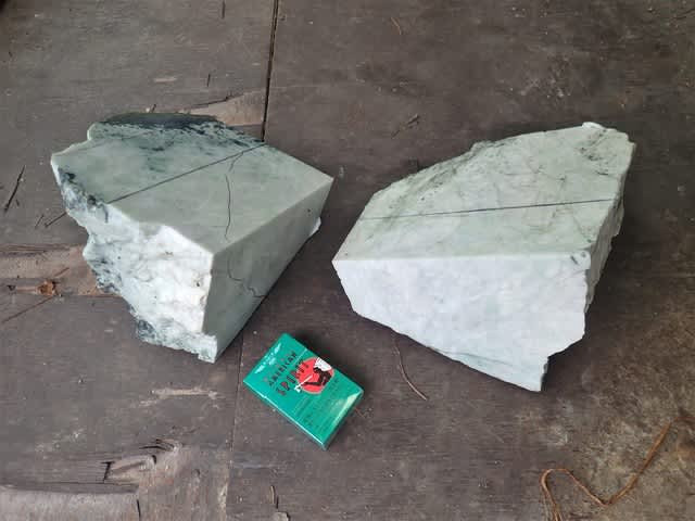 注文主を原石販売店のTさんの店に連れて行き、予算に見合った20キロ近い原石を購入。