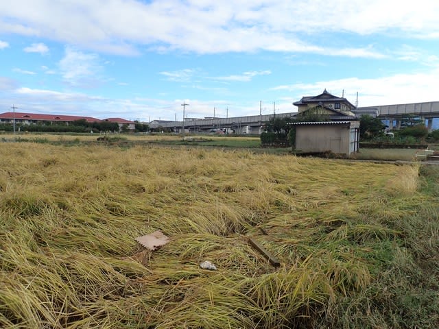 刈入れ直前に水害を受けた長野市篠ノ井地区の田んぼ・・・切ない風景。