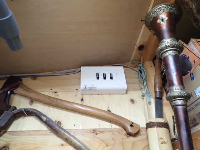 嵐の時などは漏電も怖いぞと戦々恐々としていたので、専用回路を引いてもらって一安心。コンセントも3ヶ所設置してもらい、プラグを引き抜いて入れ替えたりする必要もなくなった。
