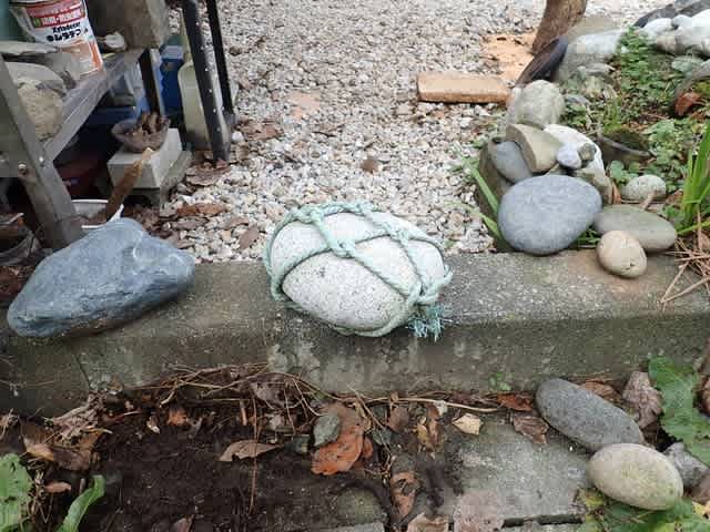 定置網の石錘も貰ったが、工房裏口の止め石にピッタリ。