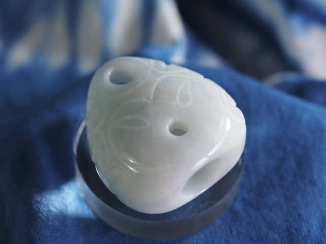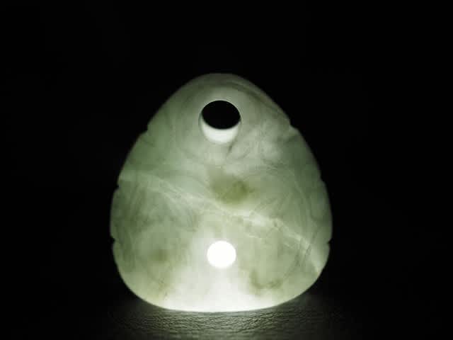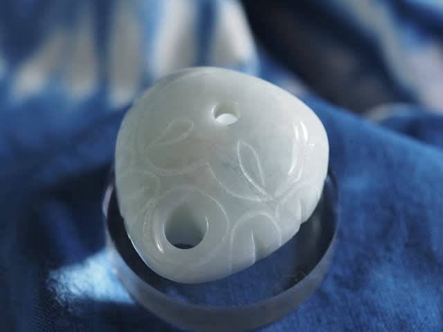 二次元表現と三次元表現を組わせて線刻したヒスイ石笛。