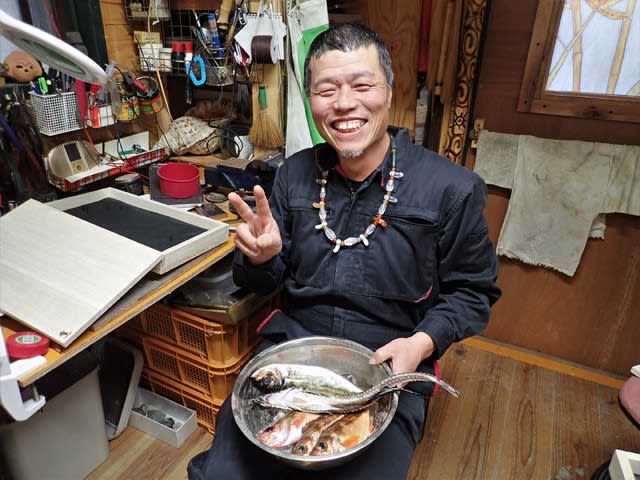 エビス顔選手権があれば、糸魚川代表に推したいくらいの松沢船長の訪問、まさしく福の神の到来。