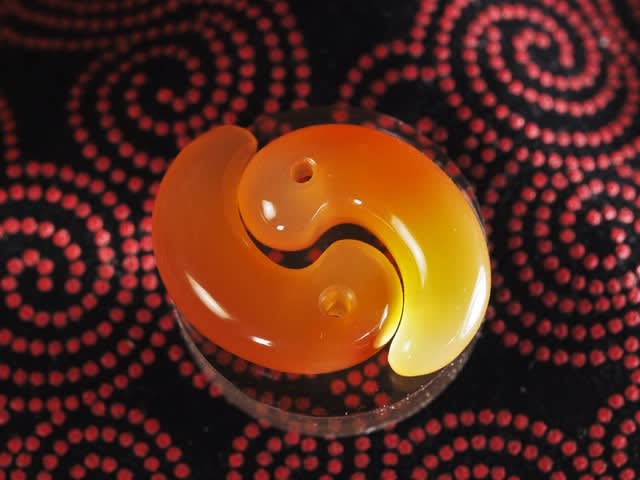 実物は青碧玉だが、赤瑪瑙と水晶で「写し」を作ってみた。
