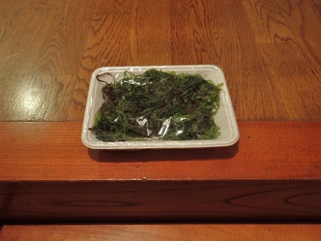 帰宅したら玄関に海藻のアオサが置いてあった。