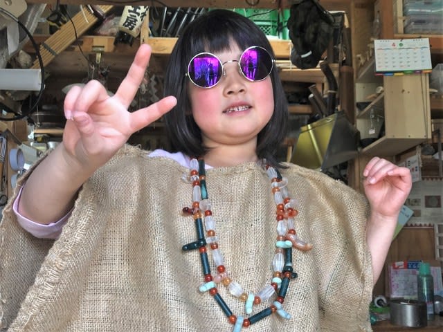 お隣のお嬢ちゃんが「じょうもんさ~ん」と遊びに来たので、ご両親も呼んでヌナカワ姫コスプレの記念撮影だけして、コロナ自粛が終わったら友達連れておいでと早々に家に帰す。