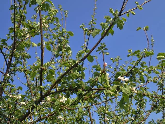 久しく咲かなかったリンゴの樹にも淡いピンクの花が咲いた。